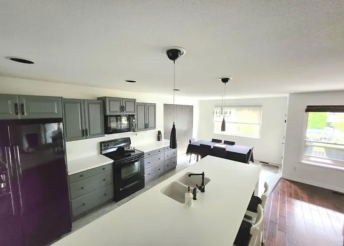 Guests are welcome to cook their own meals in a full kitchen or dine in a dining area. Kelowna Full Level Luxury-Big White Ski 35 Mins villa is 250 metres from Hwy 33 E at Traut bus stop and 13 km from The Old Woodshed Kelowna train station.